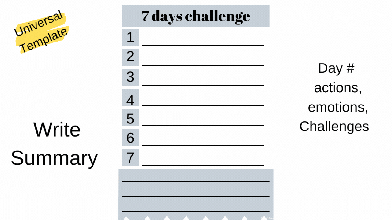 Use this simple 7 days template to check-in your habits. Write your emotions each day. Short and simple. After 7 days write a summary